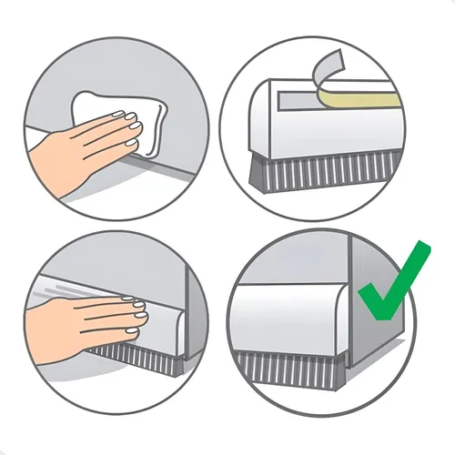 - Limpar a superfície inferior da porta, removendo poeira e resíduos